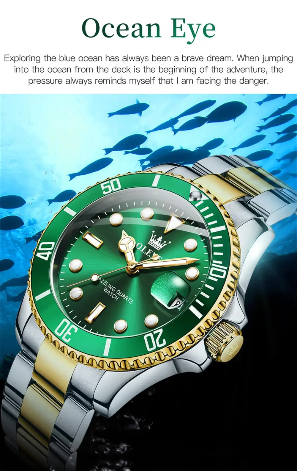 OLEVS Mens Watches Top Brand Luxury Waterproof Luminous Green Dial Men Quartz Wristwatches 3D Large Dial Watch for Men 5885